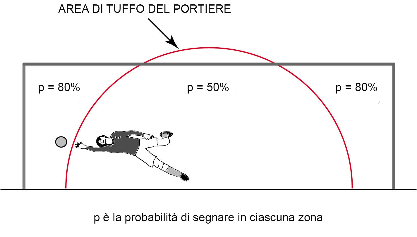 Inoltre, se il portiere si posiziona non perfettamente al centro, distanziandosi anche solo di circa 9 cm più a destra o sinistra, aumenta le possibilità di errore del tiratore, che tende a mirare l’angolo “offerto” e maggiormente sguarnito.