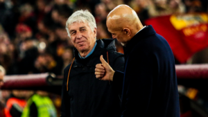 Dopo un mese di Odissea, con Coppa Italia e Champions sfumate nonostante alcune partite storiche, lo sguardo con cui si assesta bello composto nella sua area tecnica non può che essere questo. Il classico sguardo con fronte semi corrucciata di chi scende di casa con calzino + infradito a buttare la spazzatura, e le cuffie che pompano eccezionalmente la sigla di Game of Thrones per una trionfale sfilata verso il bidone dell’umido.